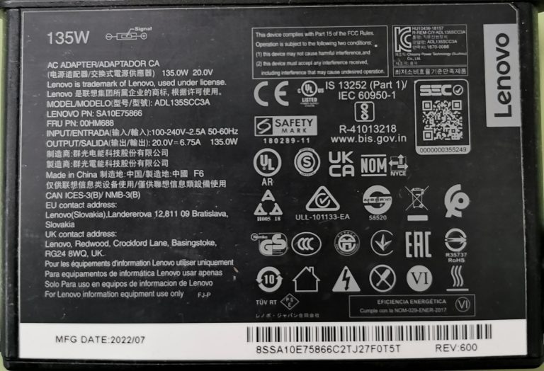 - 20V×6.75A=135W